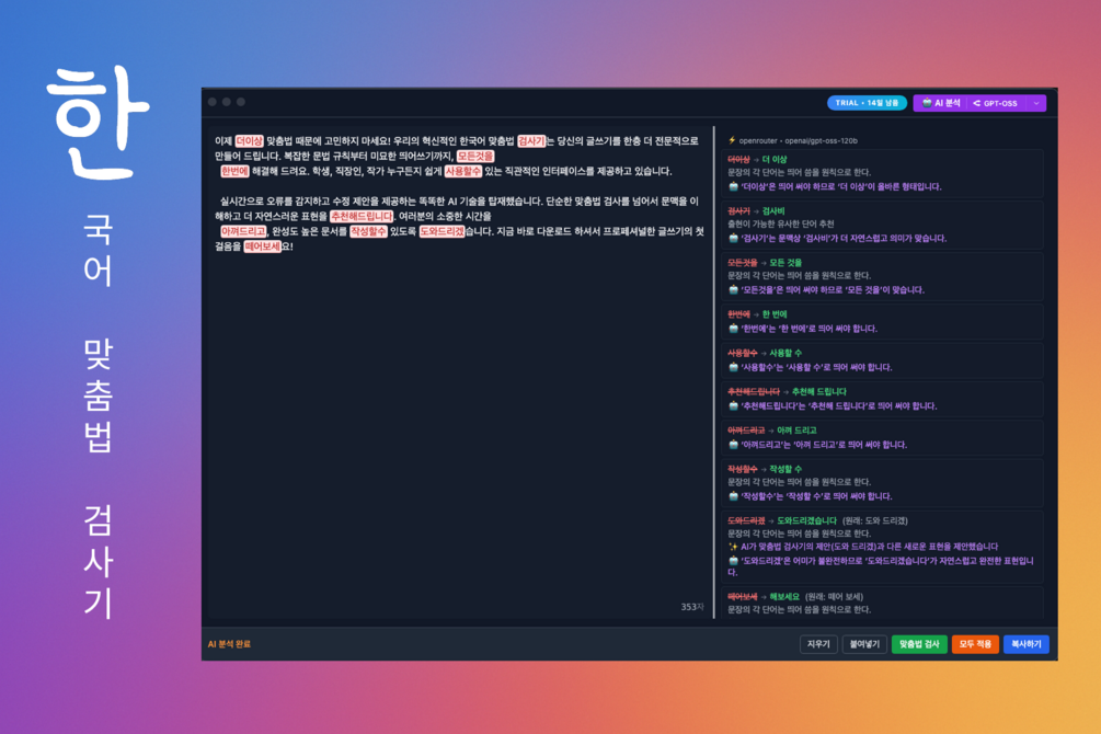 한국어 맞춤법 검사기 (Korean Grammar Desktop)